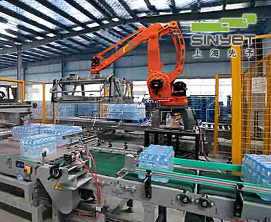 概況機(jī)器人碼垛機(jī)適應(yīng)于化工、飲料、食品、啤酒、塑料、空調(diào)等生產(chǎn)企業(yè)對紙箱、袋裝、罐裝、盒裝、瓶裝等各種形狀的成品進(jìn)行裝箱和碼垛。
